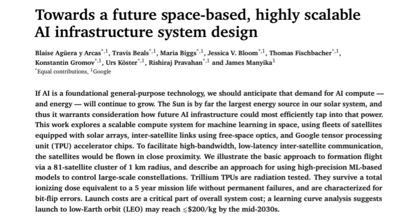 Sundar Pichai laid out the timeline: Our TPUs are headed to space. Early research shows our Trillium TPUs survived without damage when tested in a particle accelerator. Significant challenges remain, but we’re counting down to launch two prototype satellites with Planet by early 2027.