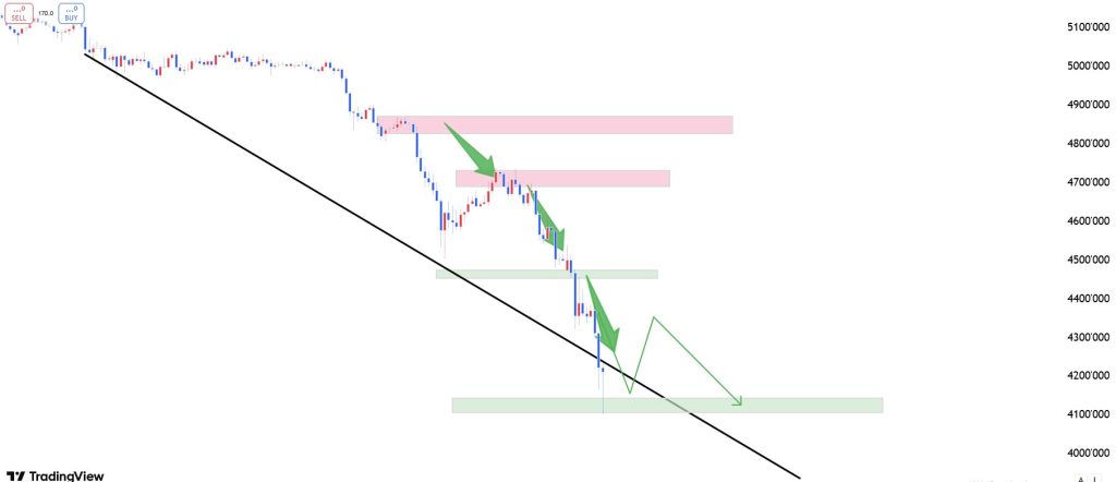 One scenario suggests that if gold rebounds toward the $4,250 area, this level could act as resistance and potentially create another downside move if bearish momentum continues. Another scenario focuses on the $4,100 region as a possible stabilization zone where buyers could attempt to defend support.
