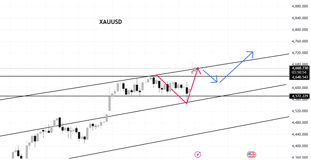 As long as gold holds above the $4,650 level, the path of least resistance remains to the upside. The current structure suggests a potential brief dip followed by renewed strength, consistent with trend continuation patterns. A sustained move toward the $4,720 area appears likely if geopolitical uncertainty persists and risk sentiment remains fragile.