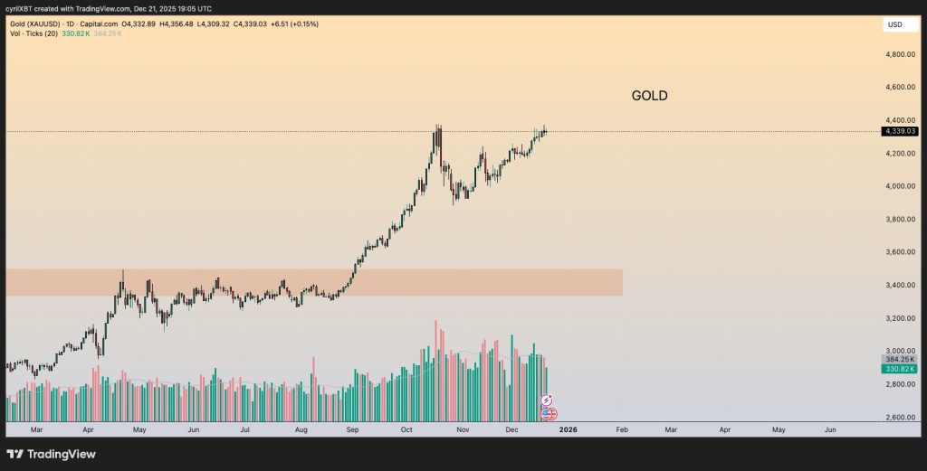 Gold’s been sitting pretty near its peak levels following an impressive run earlier this year. Traders are starting to wonder what comes next if prices begin pulling back from here. The charts show XAU/USD hanging around its upper range after smashing through a lengthy consolidation zone, though the upward momentum seems to be cooling off rather than pushing higher.