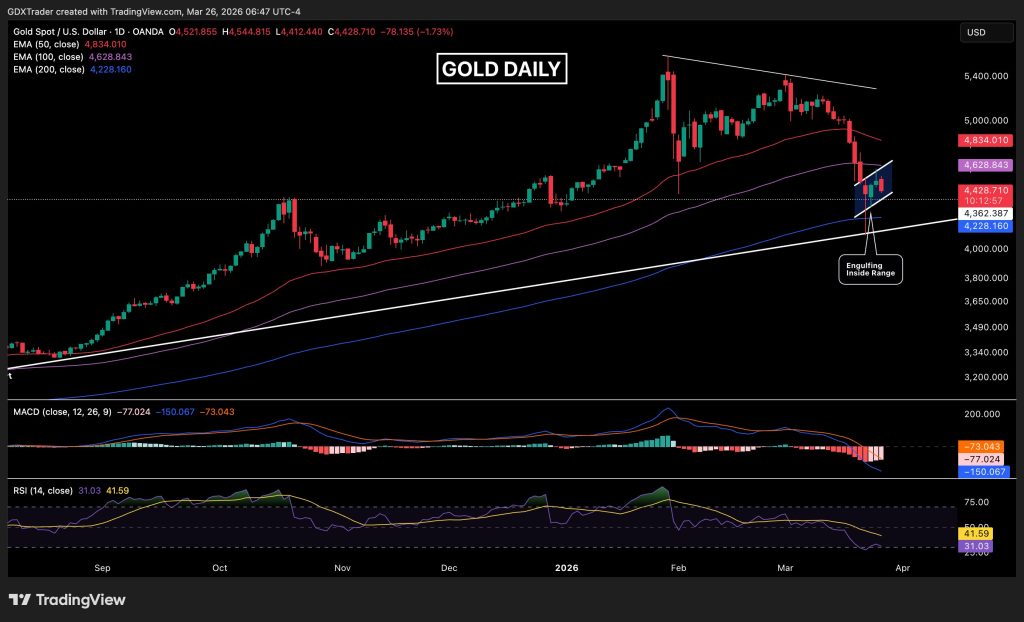 Resistance between $4,430 and $4,450 remains the most important technical zone. A sustained move above this region would be required to weaken the bearish structure.