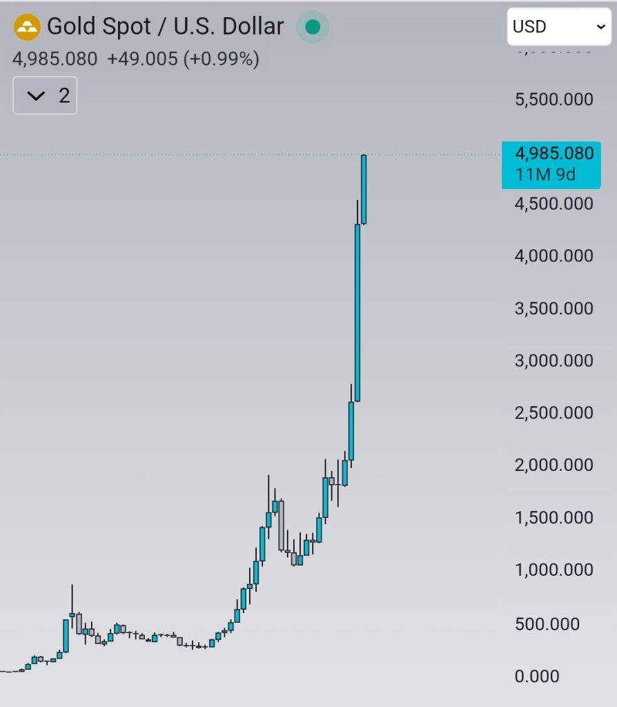 Gold is approaching the critical $5,000 price level, a milestone that often reshapes market behavior more through psychology than through fundamentals. Recent price action shows a sharp, near-vertical advance, placing gold in a late-stage momentum phase where emotions increasingly influence investor decision-making. At these levels, the market’s focus shifts from valuation to positioning, risk control, and behavioral responses.