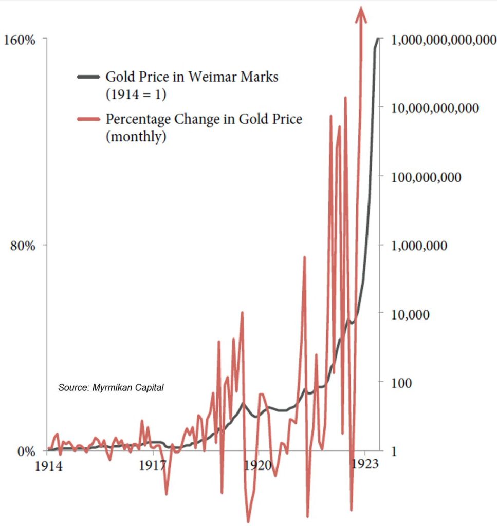 “Recent volatility in gold priced in U.S. dollars is showing characteristics similar to historical volatility observed during the Weimar Republic monetary crisis.”