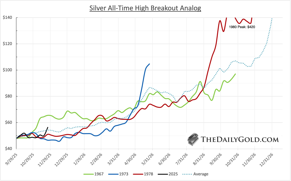 - The analog offers a roadmap for understanding where silver might head during breakout conditions. By comparing today’s move to historic inflationary and monetary transitions, the framework shows how silver responded during previous structural shifts. Market watchers are keeping close tabs on whether this advance continues following the strong breakout paths seen in past decades.