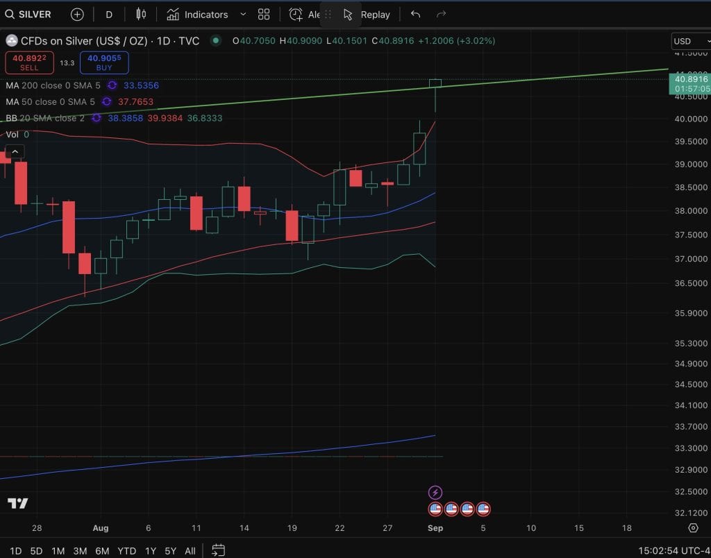 If silver can hold above $40, the next targets are $42-45. But if it stumbles, that old resistance around $38 should catch it on the way down and provide a floor.