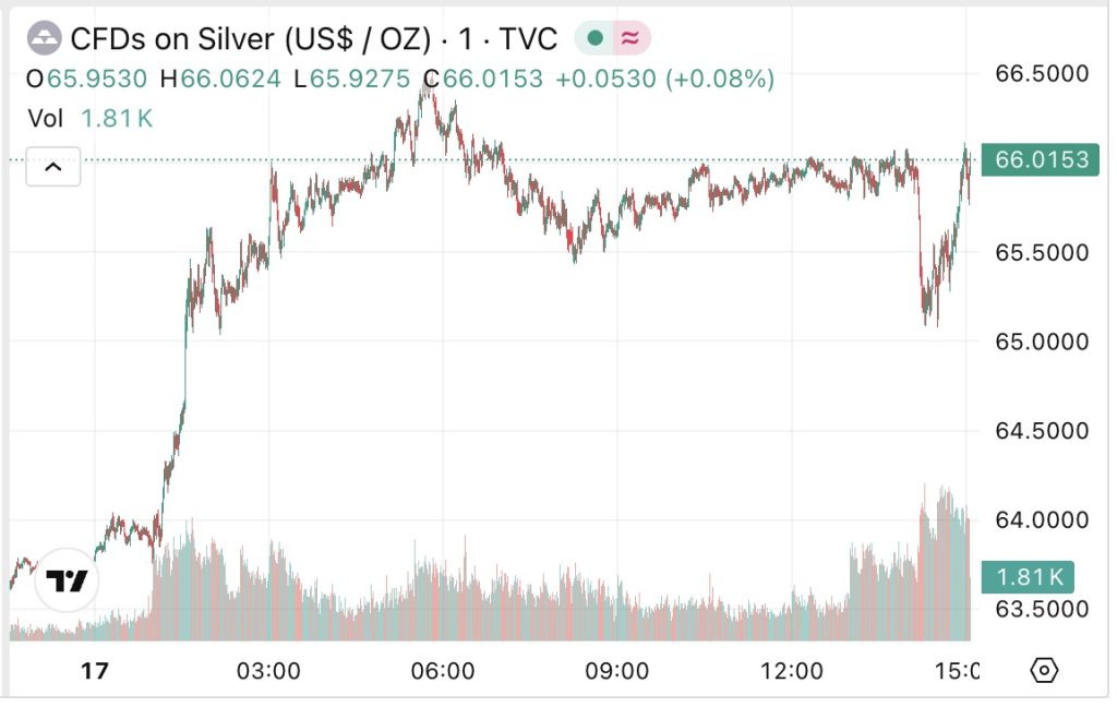 The price slipped into the mid-$65 range for a hot minute before buyers jumped in hard, pushing it back above $66. This all happened within the same session, with trading volume picking up as the recovery gained steam. Looking at how silver’s been moving lately, it’s pretty clear that downside pressure just can’t hold anymore. Every time prices dip below recent levels, buyers show up immediately.