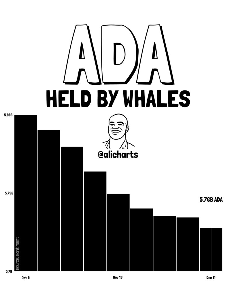 ADA Cardano Whale Holdings Drop as 120M ADA Leave Large Wallets