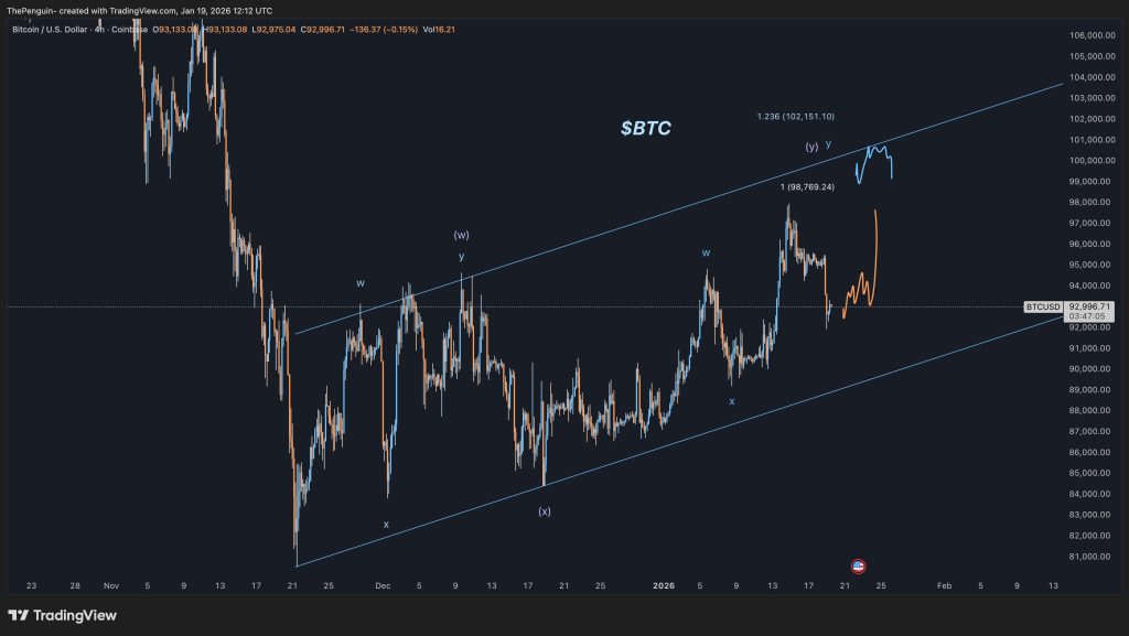 Attention is now focused on potential upside continuation toward the $100,000 region. This level aligns with the upper boundary of the broader price structure currently guiding Bitcoin’s movement.