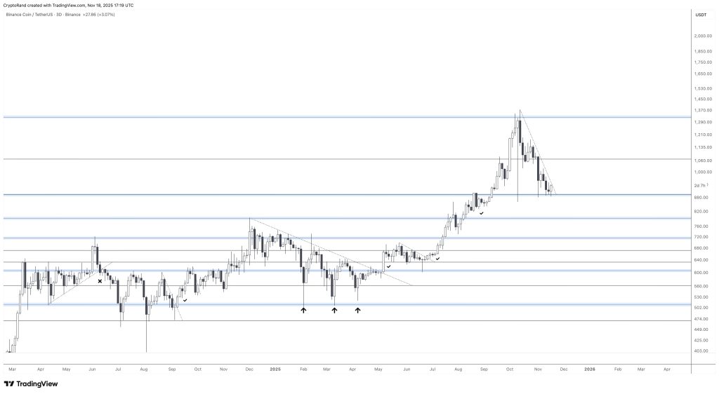 BNB Rebounds From 900 Support as Price Tests Key Downtrend Resistance