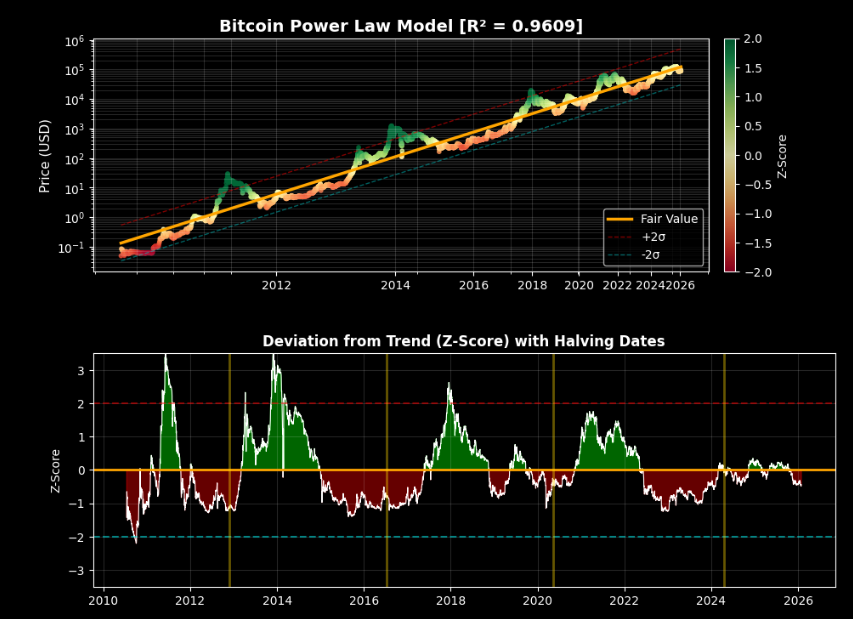 BTC Price Analysis: Bitcoin Trades 26.7% Below $122K Power Law Trend in January 2025