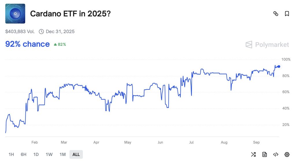 Cardano ETF Odds Explode to 92% — Highest Ever Recorded