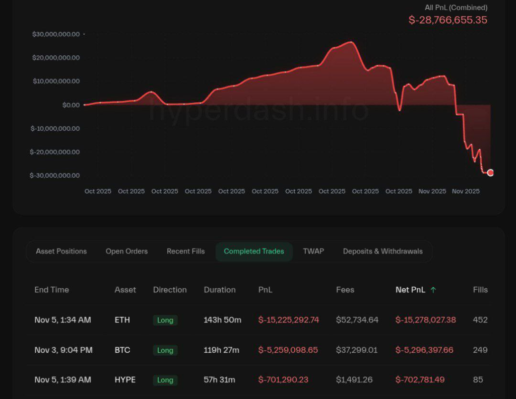 Crypto Whale Loses $28.7M After Perfect Trading Streak Ends