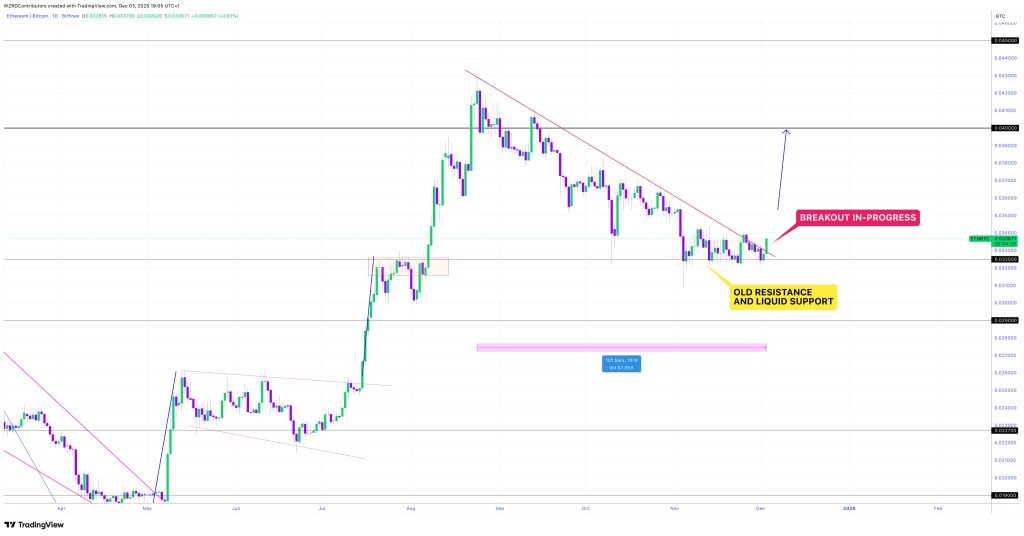 ETH/BTC Eyes Breakout After 101 Days as ETH Targets 0.04 Level
