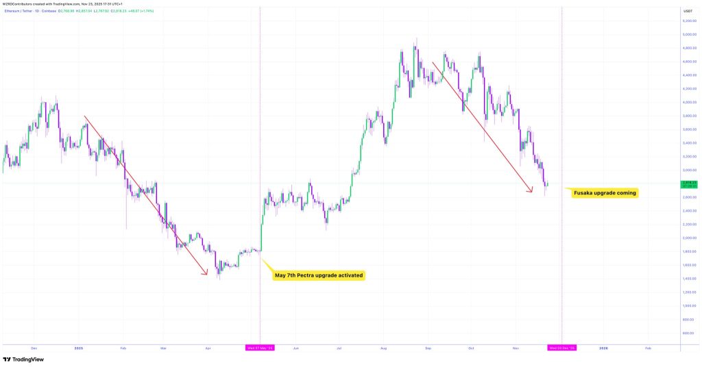 ETH Nears Fusaka Upgrade as Downtrend Continues