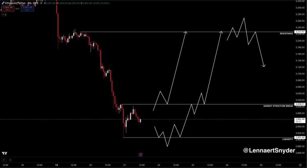 The second bullish scenario allows for another liquidity sweep below $2,907. If price dips into this zone and then shows a clear reversal, long positions become favorable again, with $3,230 remaining the upside target.