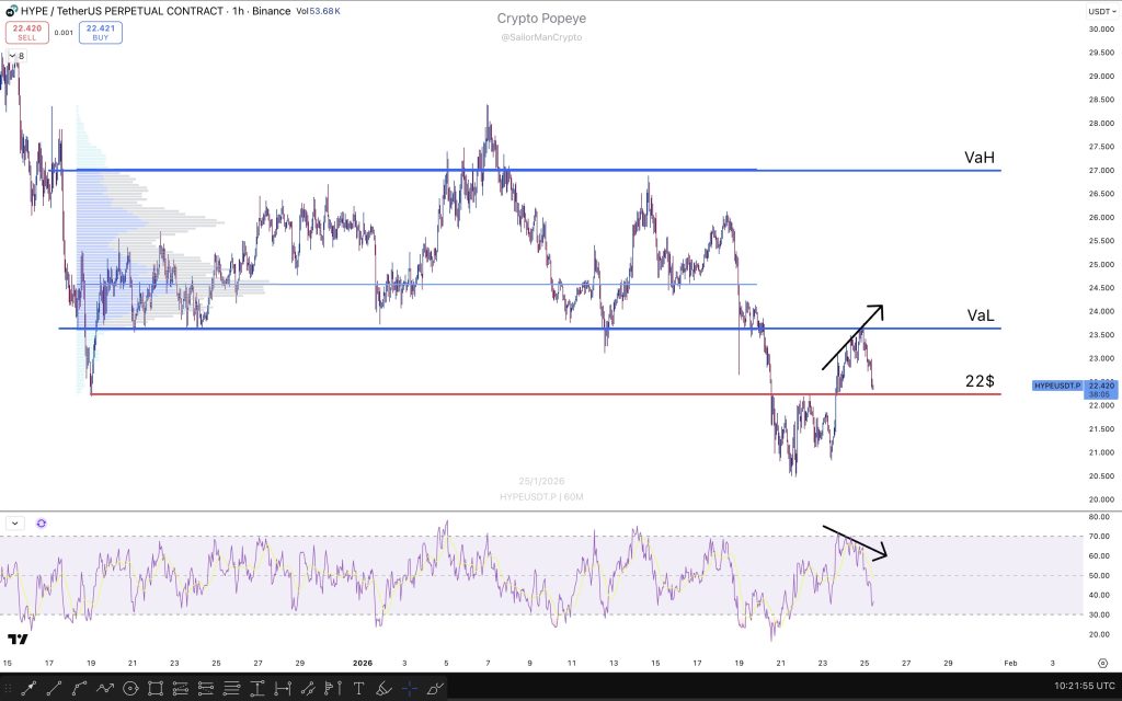 HYPE Faces Bearish Pressure as $22 Support Comes Into Focus