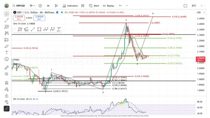 As long as XRP remains above the $1.95–$2.00 zone, the bullish wave count remains valid, keeping the door open for a potential Wave 5 advance toward the $2.41–$2.46 area.