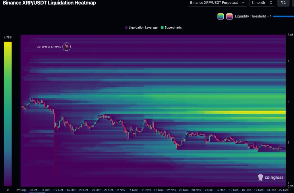 XRP Faces Liquidity Resistance Above Current Price in 3-Month Heatmap Analysis, Market Remains Unaffected