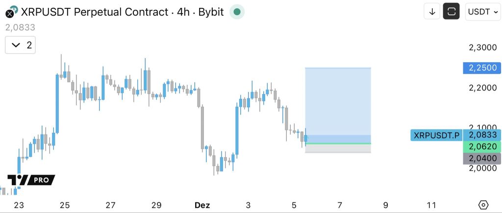 XRP Holds Above $2.08 as Stop Level Tightens to $2.04