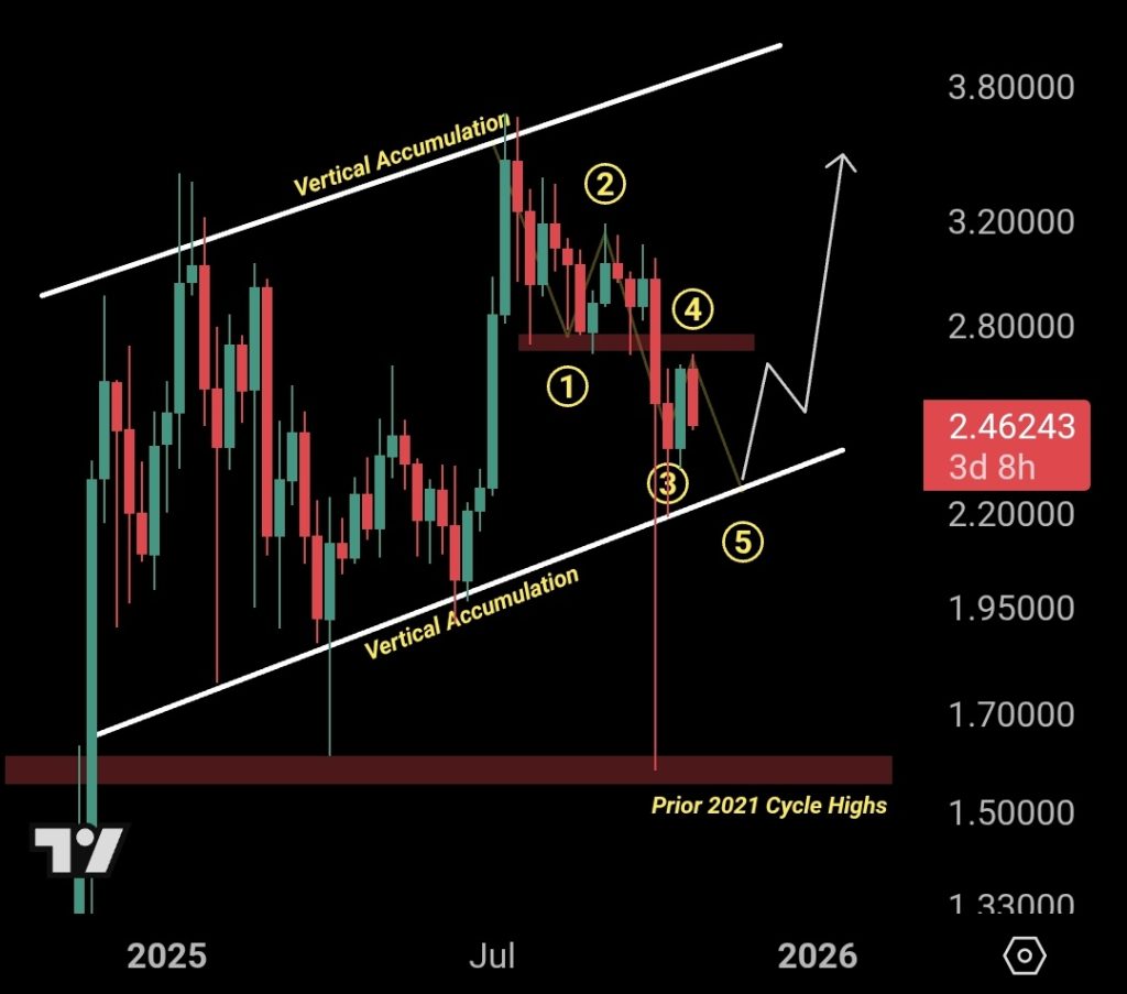 - If it breaks below $2.00, the next major support sits near $1.50, around the 2021 cycle high