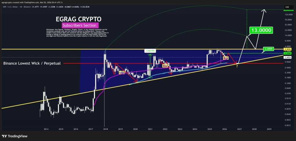 If XRP successfully breaks and holds above the $2.20 resistance, the chart structure suggests a potential move toward the $13 region. This level represents the next major macro target within the current technical framework.