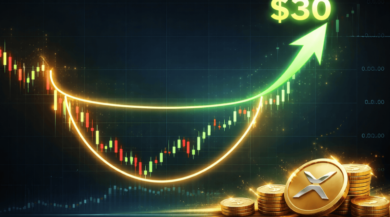 XRP may be developing one of the most structurally significant bullish formations on its long term chart. The XRP/USD pair on Bitstamp is forming a multi year cup and handle pattern on the monthly timeframe — a setup that, if confirmed, could imply a measured move toward the $30 region.