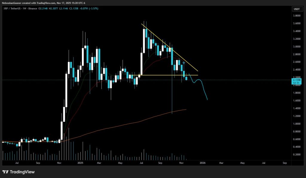 The cryptocurrency market’s recent volatility has taken a particular toll on XRP, with technical indicators suggesting the token may be headed for a significant retracement. As of November 17, 2025, XRP is trading around $2.27, representing a sharp decline from its recent highs and raising serious questions about whether the much-anticipated late-2025 rally is in jeopardy.