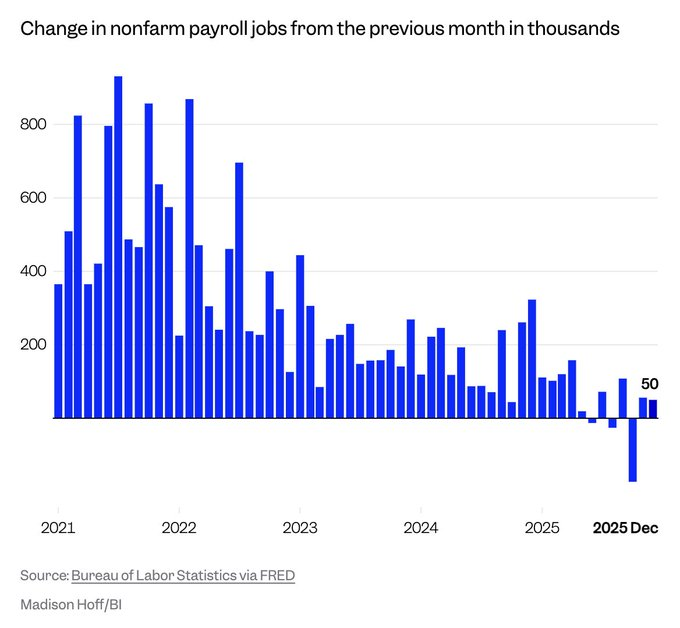 The U.S. economy added only 50,000 jobs in December, significantly below economists’ expectations of 66,000. The report highlights a continued slowdown in hiring, marking one of the weakest monthly job gains in the current economic expansion.