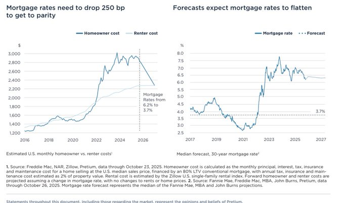 - The housing market keeps getting tougher for potential buyers. Pretium’s recent analysis shows that owning a home costs way more than renting right now. To balance things out, mortgage rates would have to fall by about 2.5 percentage points—from today’s 6.2% down to around 3.7%. That’s a massive drop that doesn’t look likely anytime soon.