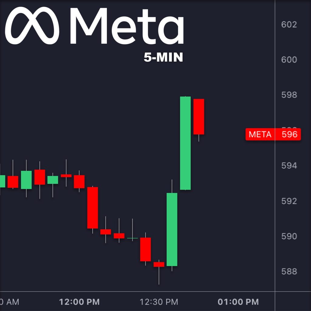 META had been sliding toward $588 on the 5-minute chart before the news broke. Once the ruling came out, the stock reversed sharply with a strong green candle pushing it up to around $596. It was one of the biggest intraday moves that afternoon and briefly stopped the downward momentum.