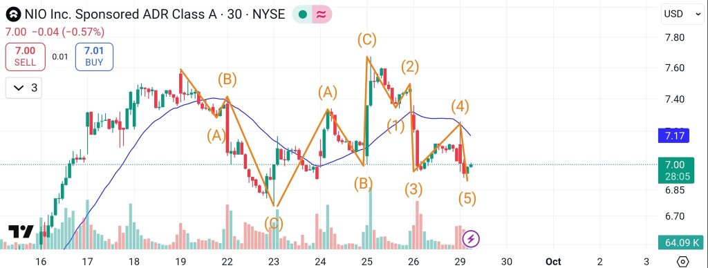 Electric vehicle maker NIO has been stuck in a sideways pattern for weeks, but the latest chart formation suggests something bigger might be brewing. Trading near $7.00, the stock is showing signs of completing a “running flat” correction—a rare bullish setup that often comes before sharp rallies. If this pattern plays out, NIO could be heading toward $10.