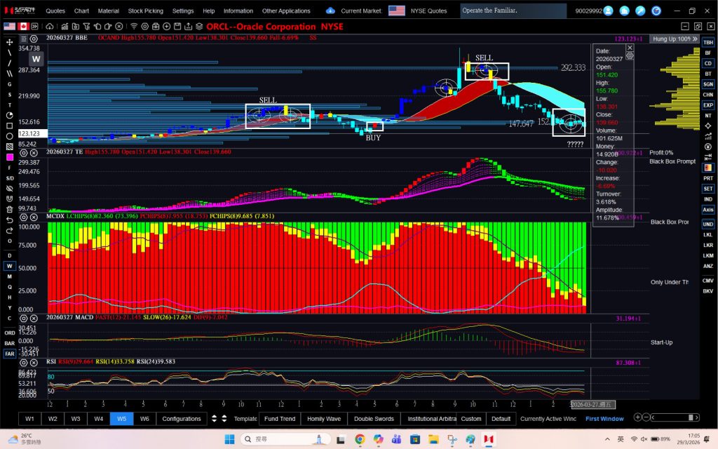 The broader technical structure shows Oracle experiencing a strong rally followed by a corrective phase. This behavior is typical after extended advances as markets reset momentum before the next trend develops.
